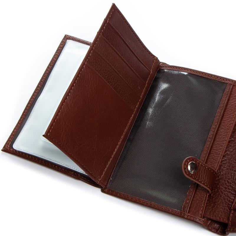 Кожаное коричневое вертикальное мужское портмоне из натуральной кожи от