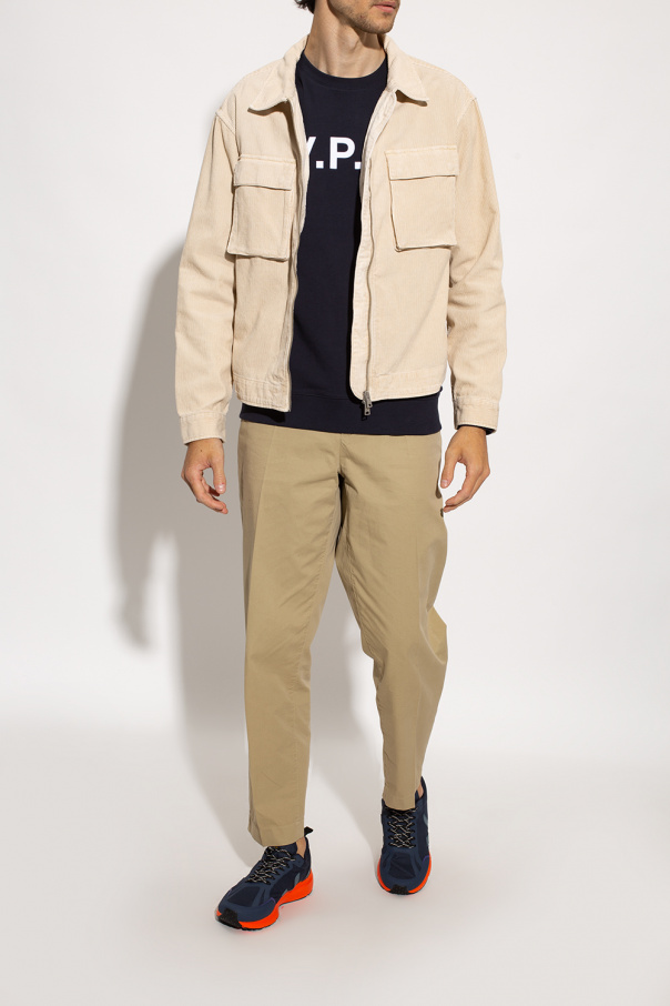 Navy running shoes from VEJA x Ciele. Produced from recycled materials, this lace-up pair features TPU panels, navy V logo, heel support insert made of Pebax® and rubber sole in orange and black.