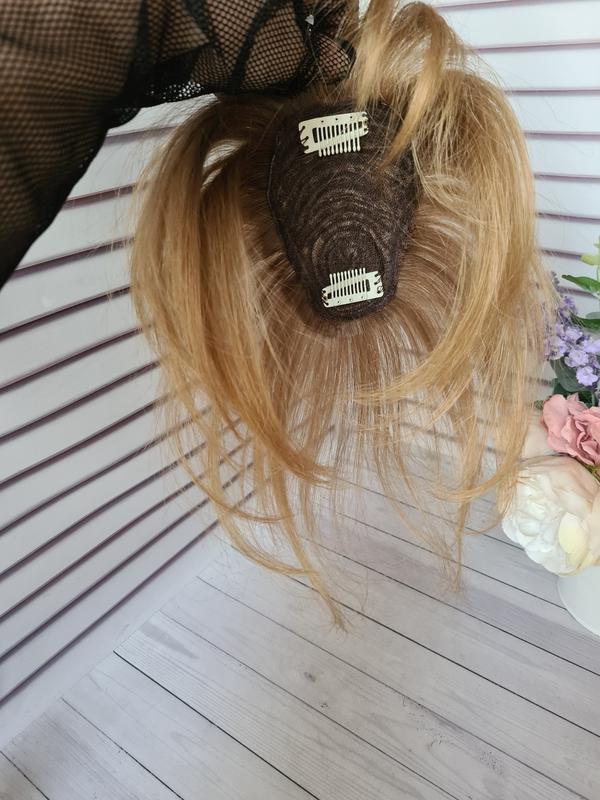 Накладная челка-шторка из натуральных человеческих волос украиночки.Волос ровной структуры чуть пористый и красивого теплого русого цвета.Можно тонировать подстригать под себя.