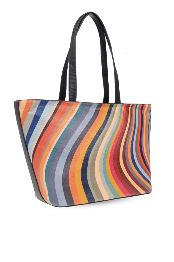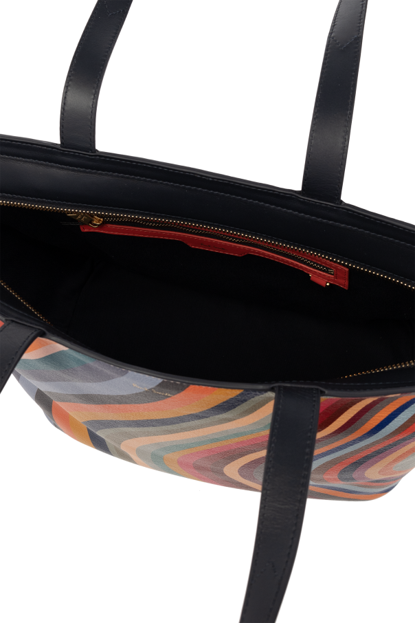 Multicolored shopper bag from Paul Smith. Made of leather, this design fastens with a zip and is decorated with a Swirl pattern and embossed logo in gold-tone. It is complete with a zipped back pocket, two half-round straps, gold-tone metal hardware and one internal compartment with one zip pocket and two slip pockets.