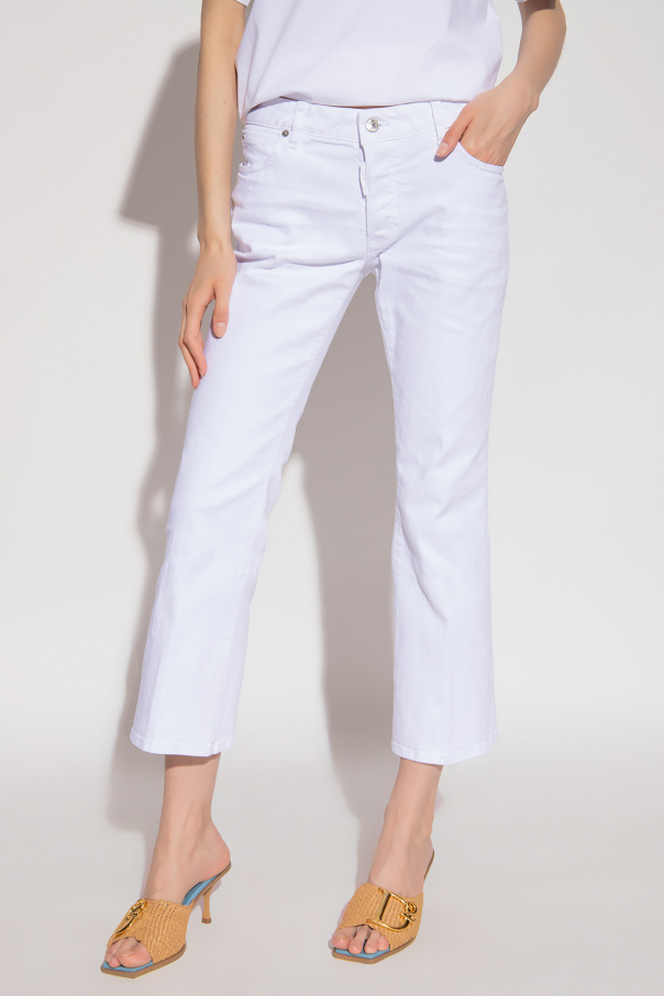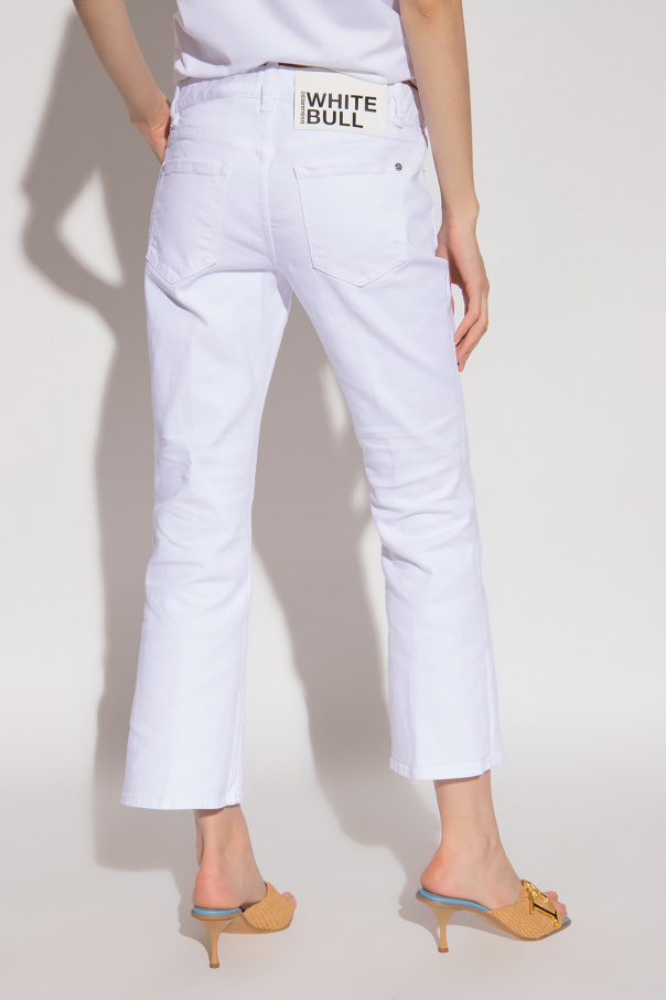 White ‘Bell Bottom’ jeans from Dsquared2. Falling with flared, cropped legs, this pair features a low-rise waist, button fastenings and classic five pockets.