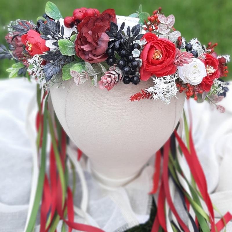 Венок выполнен из цветов премиум класса польского производителя. Изготовлен на