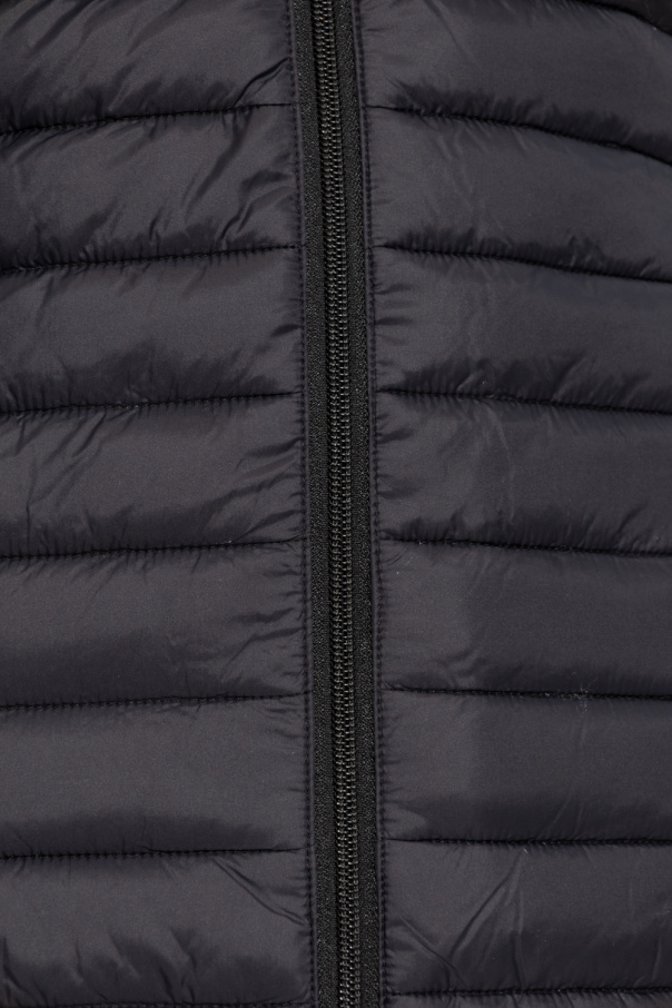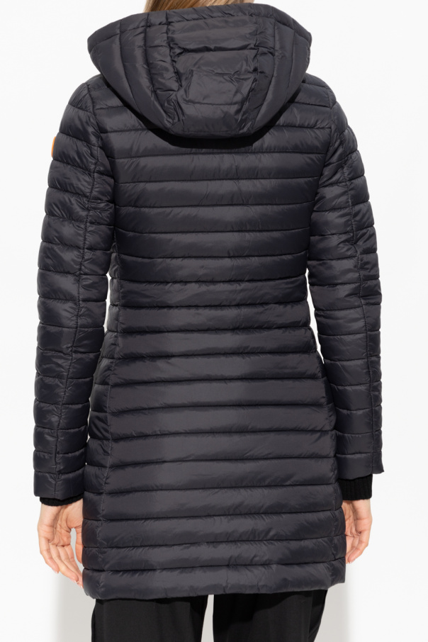 Black ‘Bryanna’ quilted jacket from Save The Duck. Fastened with a two-way zipper, this style features a detachable drawstring hood, two front zip pockets and long sleeves – one has a rubber logo patch. It\'s made with high-density 100% nylon fabric which guarantees weightlessness and fluffiness. It is thin yet resistant, thanks to its features it guarantees water repellency and wind protection, it absorbs humidity and dries rapidly.