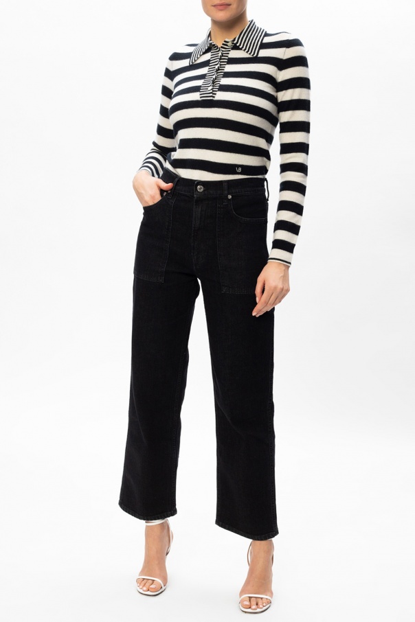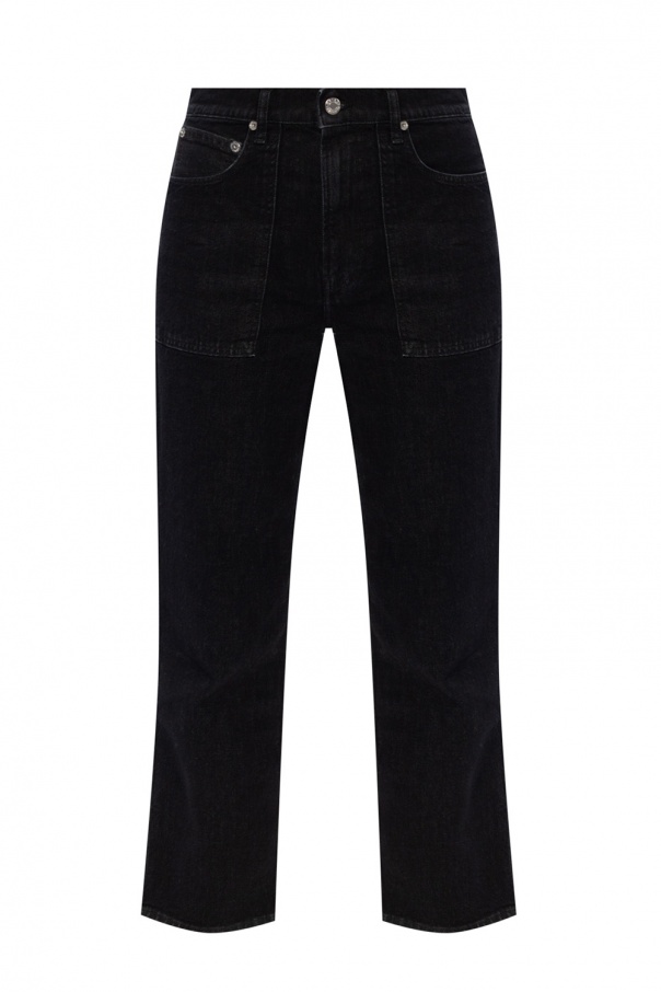 Black jeans with a washed effect from Helmut Lang. Fastened with a button and zip fly, this straight leg design is complete with three front pockets and two back pockets.