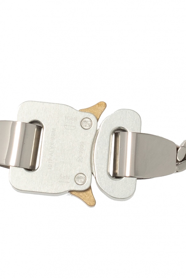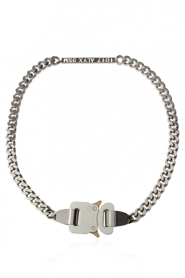 Silver-tone necklace from 1017 ALYX 9SM. Showcasing the brand\'s logo and a chain trim, this item fastens via a rollercoaster buckle which is highly recognisable for the brand.