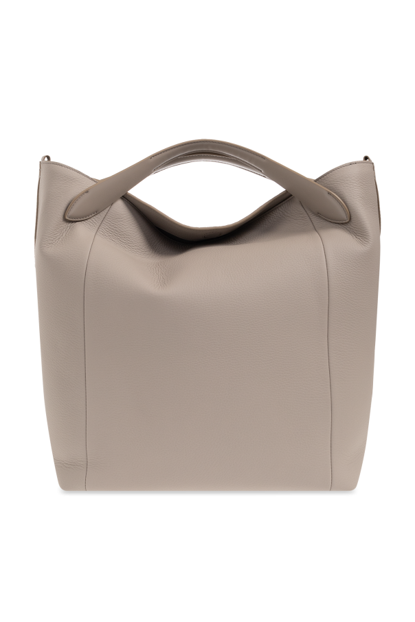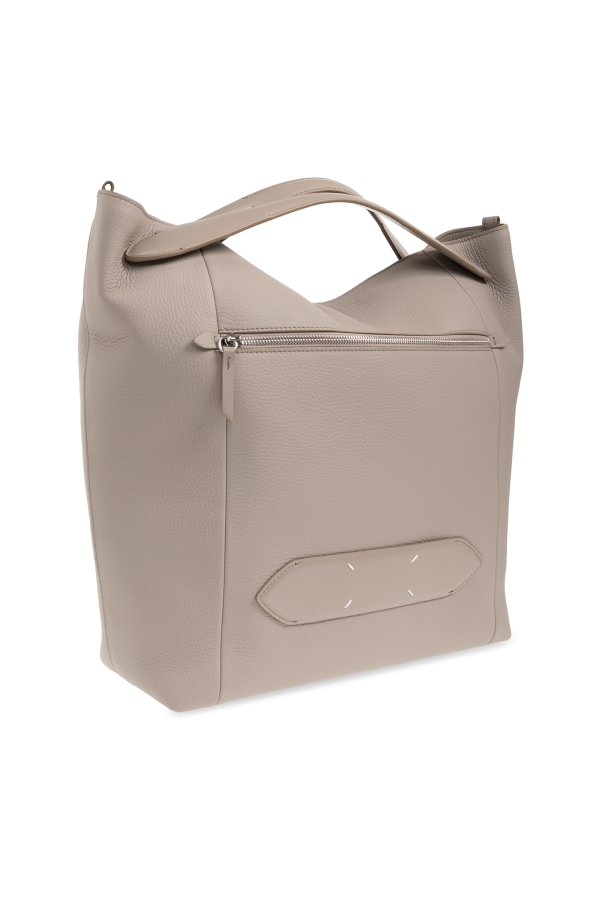 Grey shopper bag from Maison Margiela. Made of leather, this model features a magnetic snap, zipped front pocket, the brand’s signature white stitches, two handles, detachable and adjustable shoulder strap, gold-tone metal hardware and one internal compartment with two slip pockets.