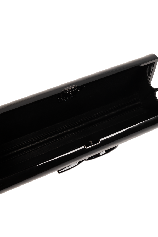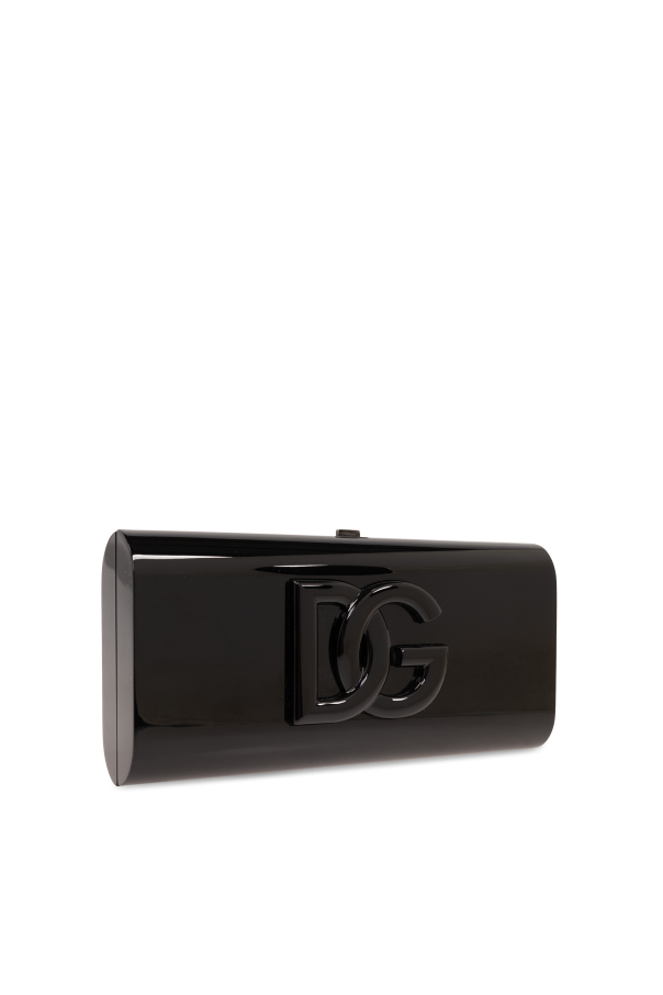 Introducing the Dolce Box Clutch by Dolce & Gabbana, a paramount of sophistication and a dazzling addition to any exclusive ensemble. Crafted with an eye for the exquisite, this rectangular clutch mesmerizes with its gleaming, high-quality material that adroitly mimics the allure of patent leather. Its dominant black hue exudes elegance, making it a versatile piece for various high-end occasions. The clutch\'s design is accentuated by the prominent designer logo on the front, instantly elevating its status to a recognizable icon of luxury. Its sleek magnetic or snap closure complements the minimalist aesthetic, ensuring your belongings are securely encased within the spacious interior, thoughtfully designed with compartments for optimal organization. Attention to detail is paramount, as seen in the uniform stitching and the superior finish on the edges, highlighting the impeccable craftsmanship that goes into each piece. Despite its compact size, which allows for an elegant handhold, it offers ample space for essentials, making it both practical and stylish. Why Purchase This Product? Exquisite craftsmanship from high-quality materials including a blend of polymethyl methacrylate, aluminum, brass, and an interior fully lined in lamb leather. Elegant, timeless design with a striking designer logo for distinguished recognition. Practicality meets luxury with its spacious compartmentalized interior and secure snap closure. A versatile accessory that complements an array of formal and semi-formal attire.