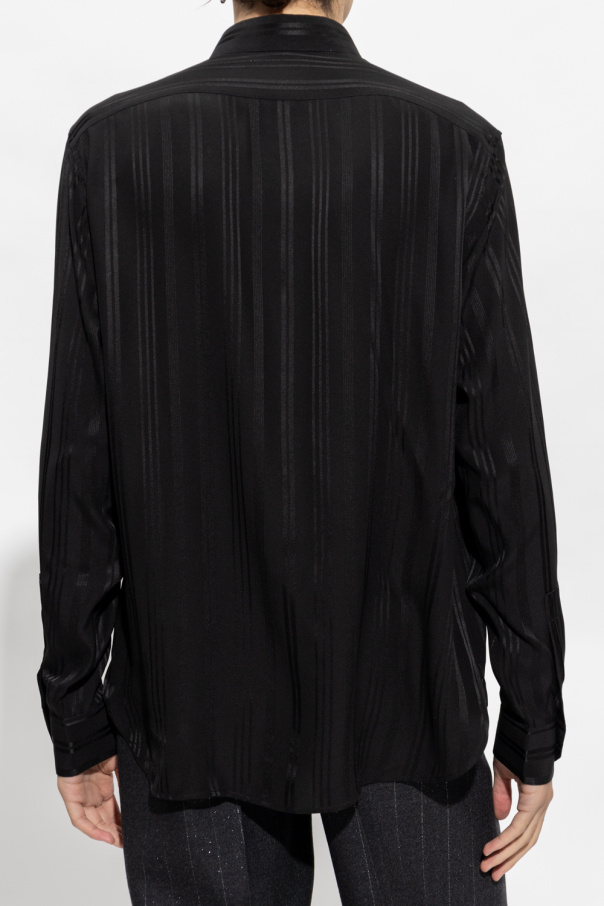 Black shirt from Saint Laurent. Crafted from silk, this garment features buttons with a concealed placket, vertical stripe pattern and long sleeves with buttoned cuffs.