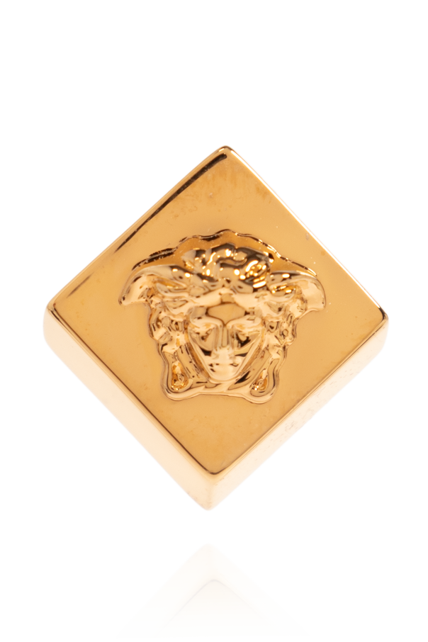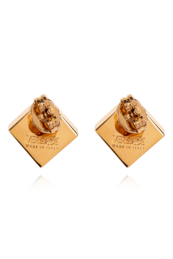 Gold-tone studs earrings Medusa head from Versace. Made of brass.
