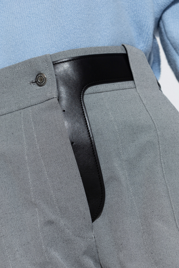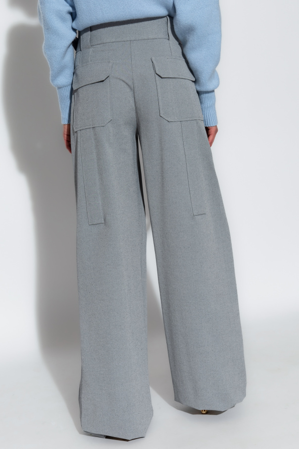 Introducing the Ferragamo Wide-Leg Trousers from our exclusive collection. These luxurious trousers, designed by renowned Ferragamo, are the epitome of sophistication and elegance. Crafted from a premium textile blend, these gray trousers feature an exquisite smooth texture. The high-waisted design accentuates the waist, while the wide-leg cut offers a graceful and relaxed silhouette. The standout detail is the detachable black leather insert at the front, adding a touch of modernity and elegance. The trousers are meticulously finished with a button and zipper closure, and two large flap pockets at the back. Vertical stitching along the front and back emphasizes the structure, showcasing the impeccable craftsmanship typical of high-end fashion brands. Why Choose This Product? High-quality textile blend ensuring comfort and durability. Elegant high-waist and wide-leg design for a flattering fit. Detachable leather insert for a unique and modern touch. Expertly crafted with attention to detail.
