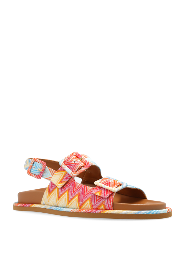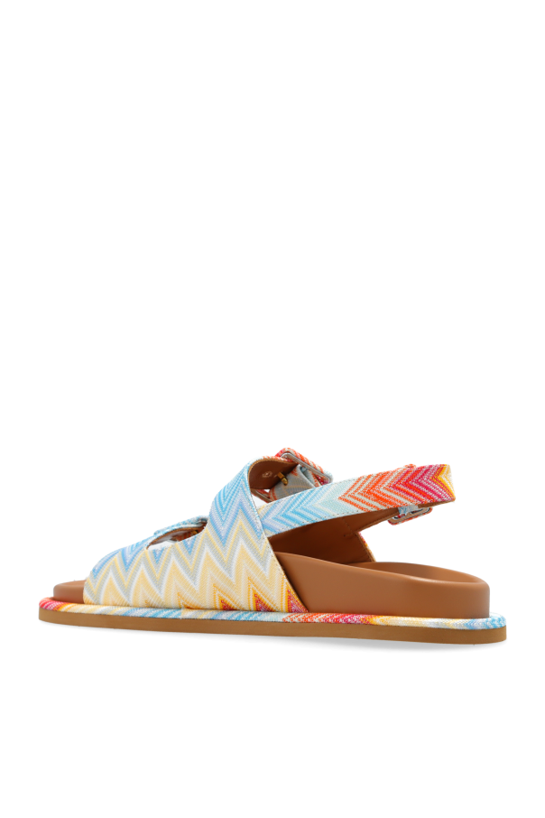 Introducing the epitome of summer elegance: Missoni\'s Multicolor Zigzag Sandals. Crafted with meticulous attention to detail, these flat-heeled sandals are a testament to the innovative spirit of the renowned designer, Missoni. The vibrant, multicolor zigzag pattern that adorns the straps is a harmonious blend of pink, blue, yellow, and other lively hues, creating a captivating multicolor effect that is both eye-catching and sophisticated. Constructed with an open design featuring several straps across the midfoot and a buckle-fastened strap over the toes, these sandals are the quintessence of comfort and style. The outer layer of the sandals is made from 100% high-quality material, ensuring durability and longevity. The inner layer boasts a 100% leather lining in a rich brown hue, offering supreme comfort for all-day wear. The sole, made of 100% rubber, provides excellent grip and stability, making these sandals not only a stylish choice but a practical one for everyday adventures. The discreet placement of Missoni\'s logo on the insole guarantees authenticity and heralds the sandals\' pedigree from one of the most celebrated names in fashion. These sandals, with their distinctive zigzag pattern and robust construction, are a standout addition to any summer wardrobe, perfectly blending Missoni\'s iconic design aesthetics with practical functionality. Why Purchase This Product? Exceptional Design: Signature Missoni zigzag pattern in a vibrant multicolor palette. Superior Comfort: 100% leather lining and a flat rubber sole for all-day wear. Versatile Style: Suitable for both casual and more sophisticated summer outfits. Authenticity: Branded insole confirms its Missoni origin, adding value to your collection.