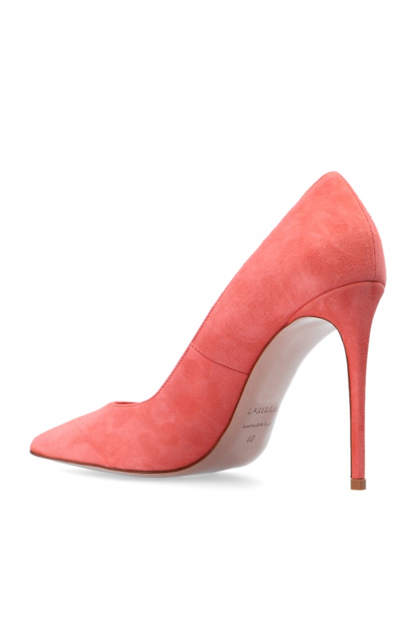 Light pink ‘Deco Eva’ stiletto pumps from Le Silla. Made of suede, this pointed toe design rests on a beige leather sole with an anti-slip rubber insert.
