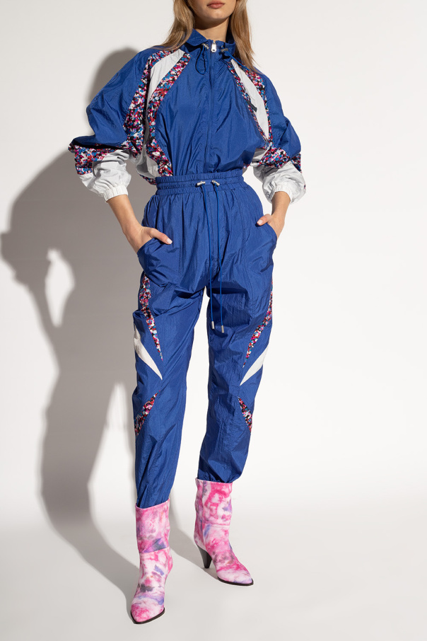 Pink ‘Rouxa’ heeled boots with a tie-dye pattern and brown leather sole from Isabel Marant.