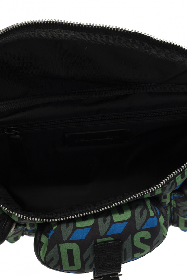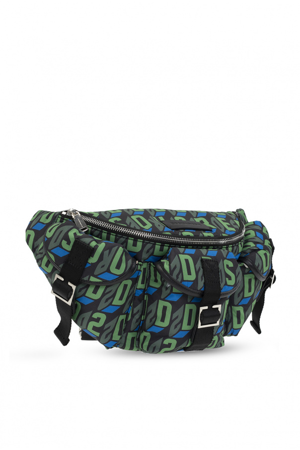 Multicolored belt bag from Dsquared2. Fastened with a zip, this design features three flap pockets with a magnetic closure, back zip pocket, adjustable strap, silver-tone metal hardware and one internal compartment with one zip pocket.