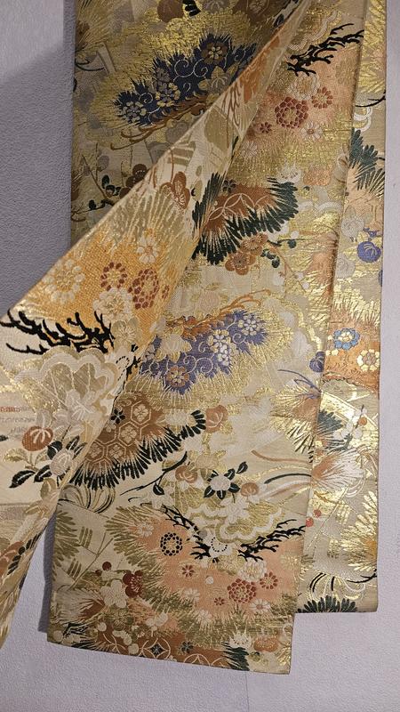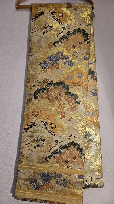 Винтажный японский пояс оби более старой формы. Двусторонний, из цельного отреза ткани. Узор по всей длине с обеих сторон.