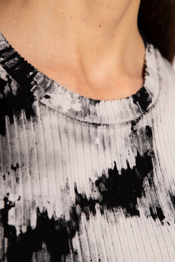 Black, grey and white crewneck tank top from Cotton Citizen. Crafted from cotton with ribbed detailing, this style features a tie-dye pattern and an elasticated collar.