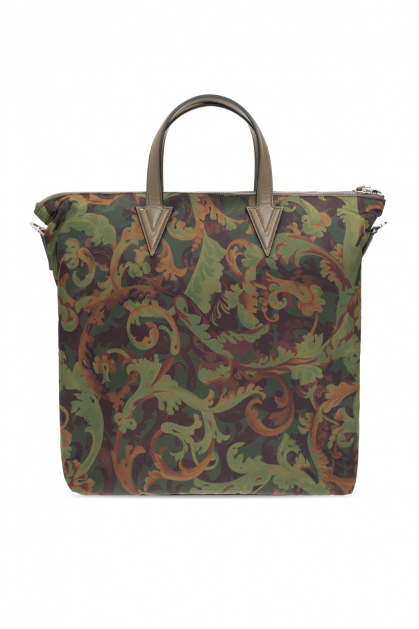 Green, brown and beige ‘La Medusa’ shoulder bag from Versace. Embellished with the brand\'s signature Barocco pattern, a motif of Medusa and a logo, this design features a zip fastening, two half-round handles, a detachable and adjustable shoulder strap, silver-tone metal hardware and one internal compartment with one zip pocket, one slip pocket and one velcro-fastened pocket.