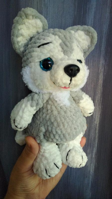 Хаски из плюшевой пряжи, высота игрушки 23 см. Очки и носик на безопасном креплении Наполнитель холлофайбер