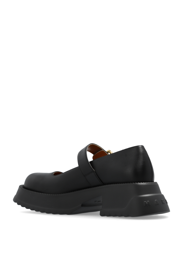 Black platform shoes from Marni. Made of leather, this design features an adjustable buckle strap and a black rubber sole.