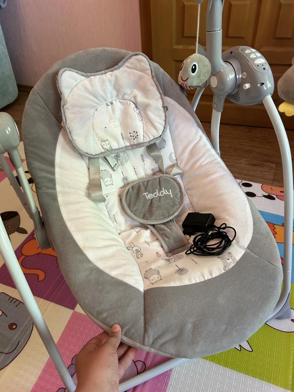 В комплекте пульт управления, блок питания, съемная подушка, 5-ти точечные ремни безопасности, 3 подвески.