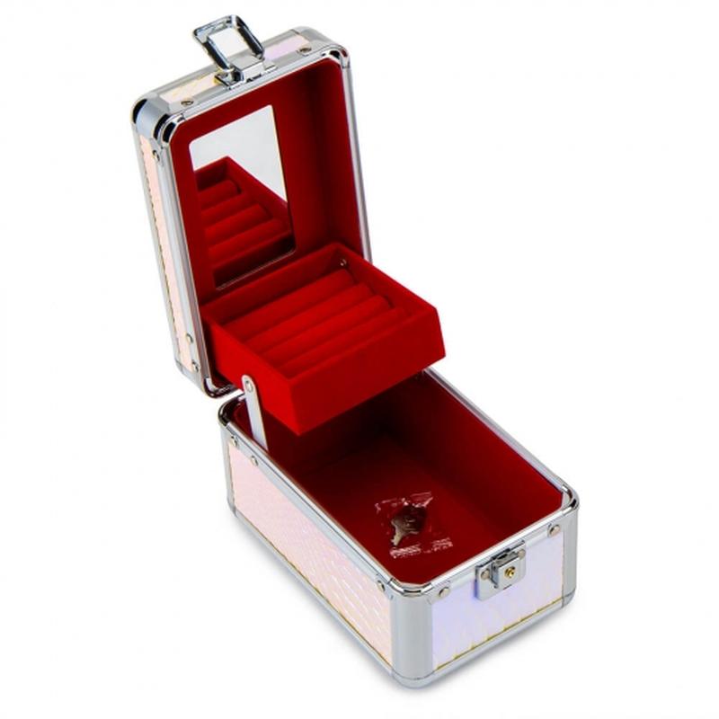 Кейс-сундук станет оригинальным и действительно необходимым подарком для девочек всех возрастов, ведь каждая хочет хорошо хранить косметику, аксессуары и важные мелочи. Это также прекрасный вариант для хранения всего необходимого для визажистов, мастеров красоты, ведь ящик имеет удобную металлическую ручку и достаточное количество отсеков. Это стильное изделие будет тщательно хранить все содержимое. Шкатулка выполнена из кожзаменителя и металла, закрывается на замке, имеет удобную металлическую ручку и ключ.
