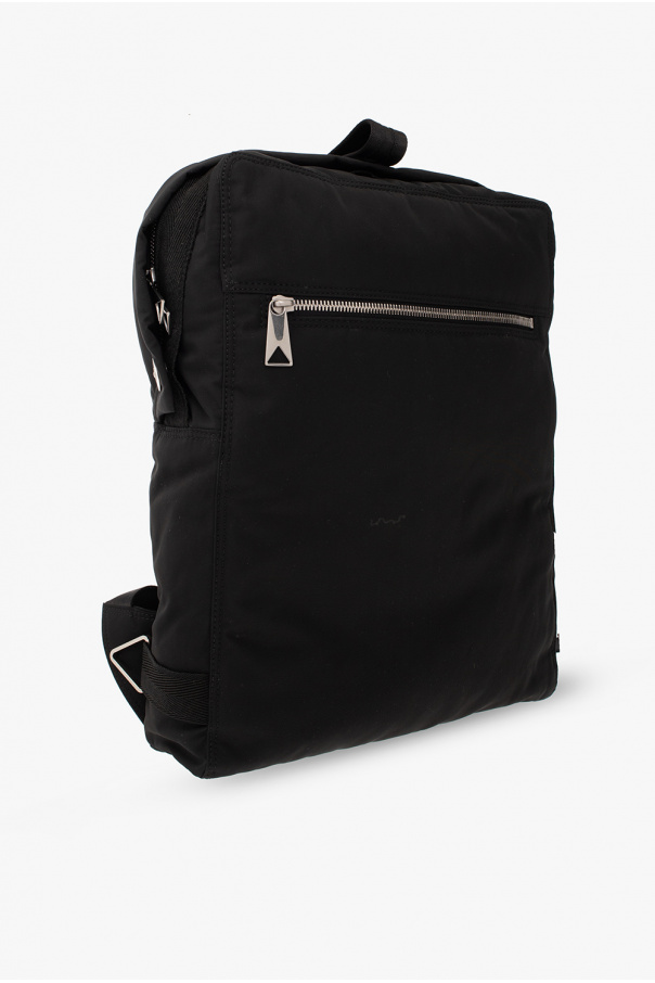 Black backpack from Bottega Veneta. Fastened with a two-way zip and snaps, this model is complete with a front zip pocket, half-round handle, adjustable shoulder straps, silver-tone metal hardware and one internal compartment with one zip pocket and two slip pockets.