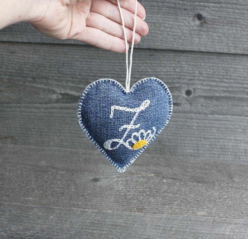 Саше из темно-синего денима с ручной объемной вышивкой шелком