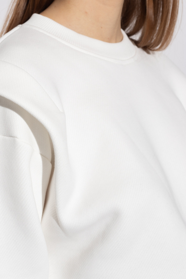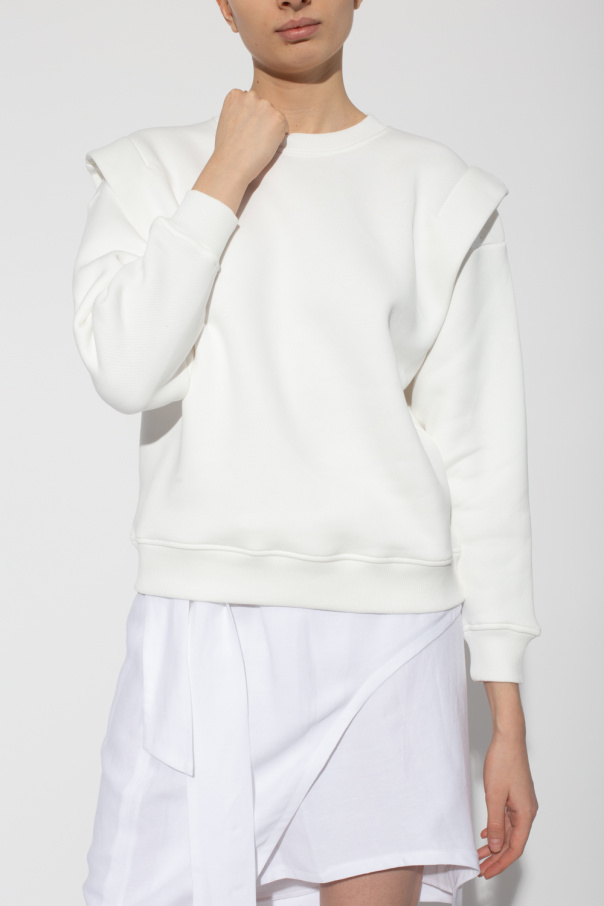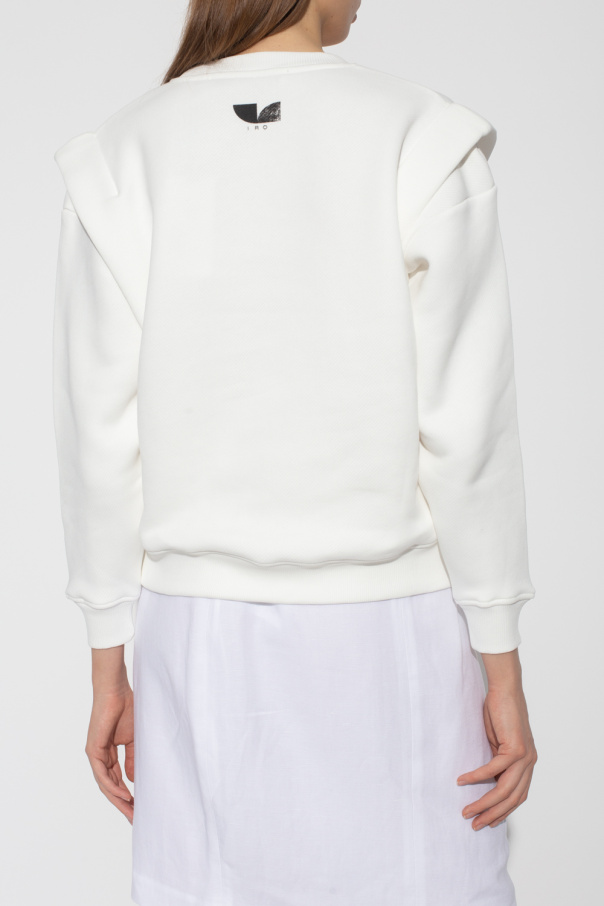 White crewneck sweatshirt from Iro. Crafted from cotton jersey, this style features a black logo printed at the back, pleated detailing on the shoulders and ribbed trims on the collar, bottom hem and cuffs.