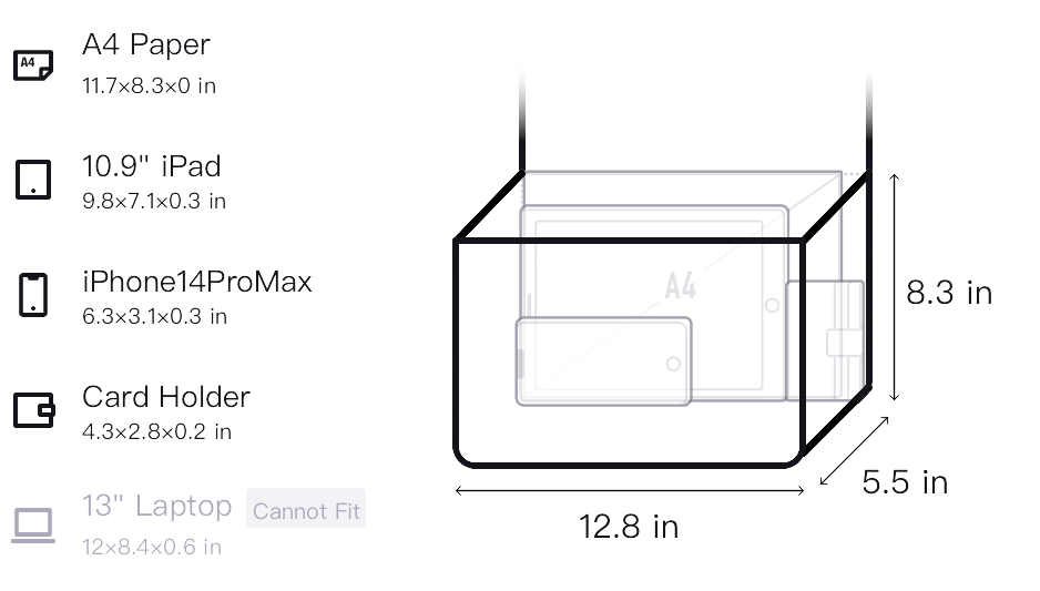 - Structure:Internal Zip Pocket, Multifunction Pocket, Zip Closure, Side Sliding Compartment, External Side Open Pocket