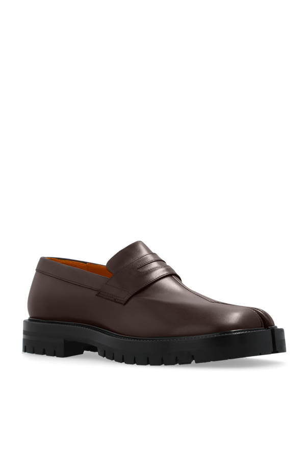 Introducing the exquisite \"Tabi\" High-Heeled Leather Boots by the renowned Maison Margiela. Crafted with precision, these boots embody a seamless blend of traditional Japanese aesthetics and contemporary fashion sensibilities. The distinctive split-toe feature, reminiscent of the classic tabi footwear, sets these boots apart, offering a unique silhouette that merges cultural heritage with modern elegance. Constructed from premium quality leather, the exterior of the boots radiates a deep, rich brown hue that exudes sophistication and exclusivity. The robust and thicker sole, adorned with pronounced treads, promises excellent grip and durability, while the elevated heel ensures an added height with unwavering stability. The minimalist design, devoid of superfluous embellishments, renders these boots versatile and effortlessly integrable into a myriad of fashion ensembles. The interior, revealed in one of the photographs, showcases a light lining potentially bearing the logo or brand name, signifying authenticity and meticulous attention to detail. This feature, along with the high-grade leather composition of both the outer and inner layers and the sole, underscores the luxury and craftsmanship inherent in Maison Margiela\'s creations. Why Purchase These \"Tabi\" Boots? Unique Design: The split-toe feature offers a distinctive look that stands out. Premium Quality: High-quality leather construction ensures durability and elegance. Versatile Style: Their classic and minimalist design complements various outfits. Stability and Comfort: The solid sole and high heel provide both height and comfort. Authenticity: Details like the interior lining and brand markings confirm the boots\' genuineness.