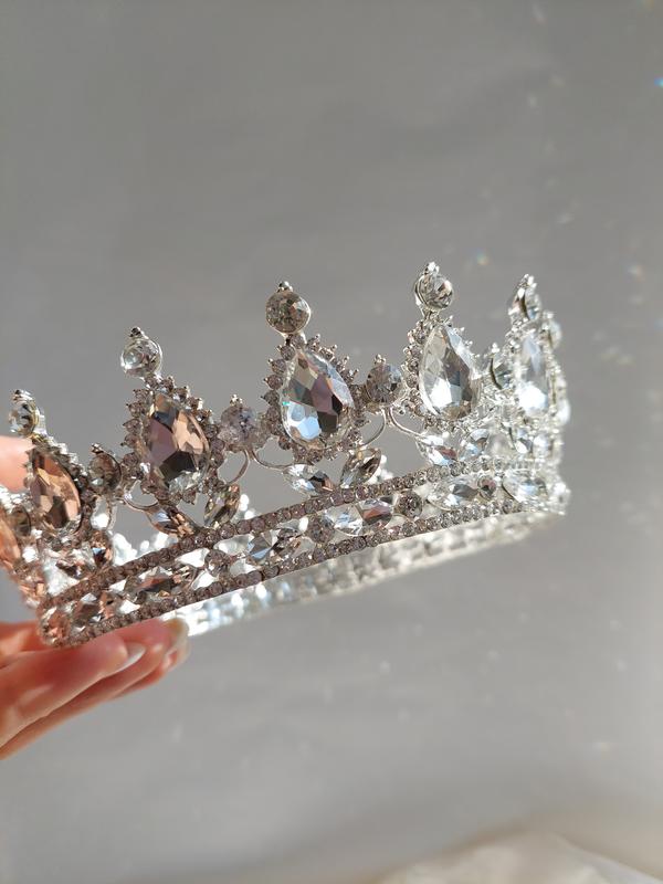 Металлическая корона с фианитами, подойдет на торт или для прически)