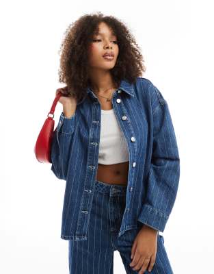 ASOS DESIGN super baggy jean and shirt in blue stripe