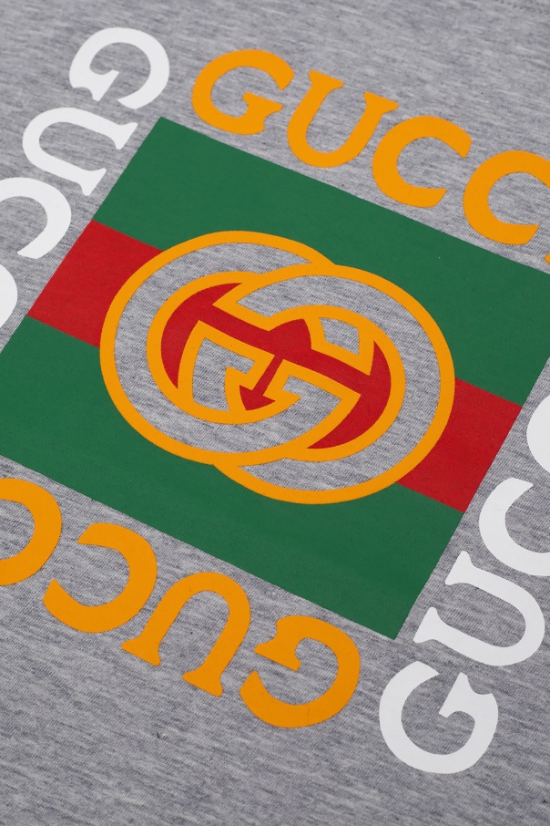 Grey crewneck T-shirt from Gucci Kids. Crafted from cotton, this item comes decorated with a printed logo pattern.