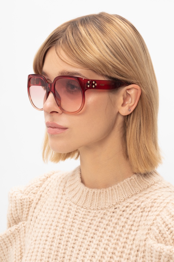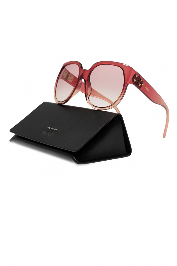 Red, translucent sunglasses from Fendi. Showcasing the brand\'s logo embossed in gold-tone hue on the temples, this pair is complete with certificated pink lenses, which ensure 100% UVA and UVB protection.