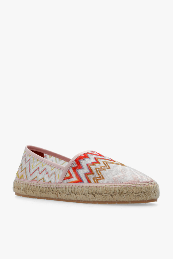 Multicolored espadrilles from Missoni. Made of fabric and leather, this pair features a geometric pattern and beige rubber sole.
