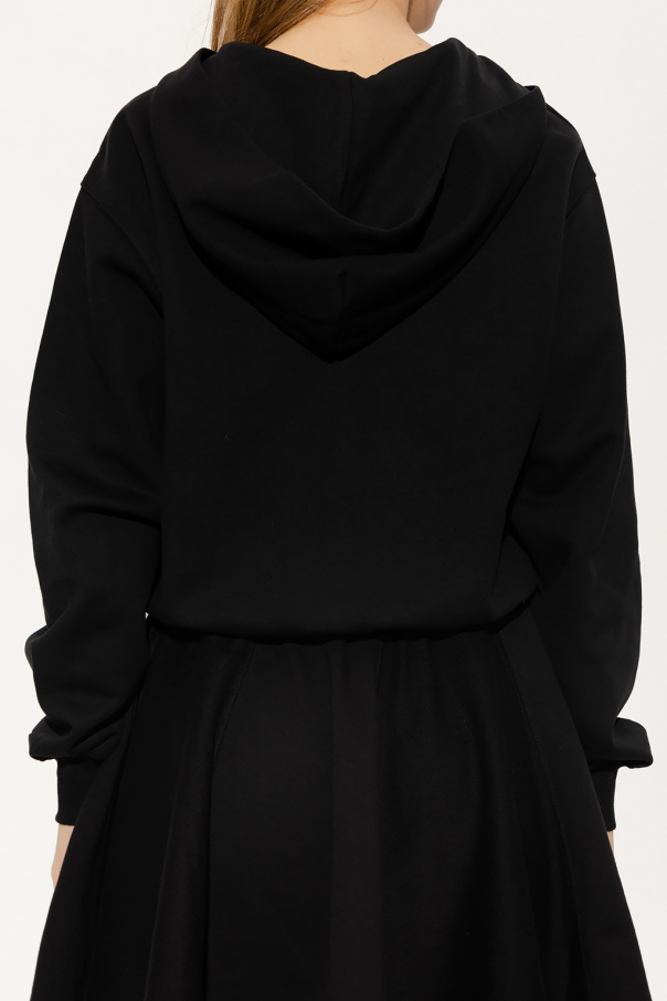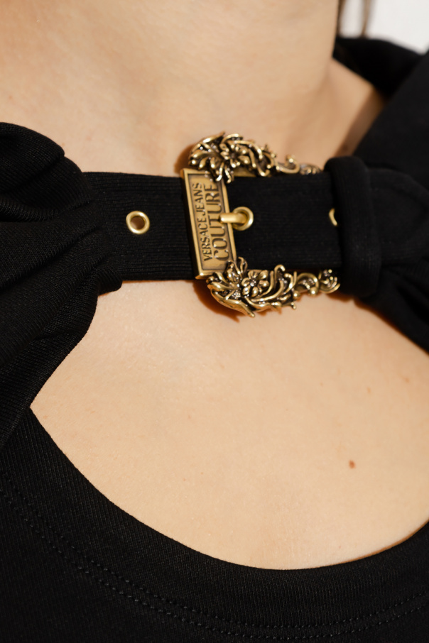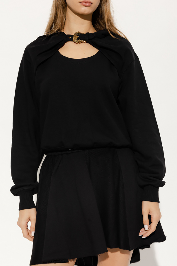 Black hoodie from Versace Jeans Couture. Crafted from cotton, this style features a cut-out detail with a branded buckle on the front and elasticized trims on the bottom hem and cuffs.