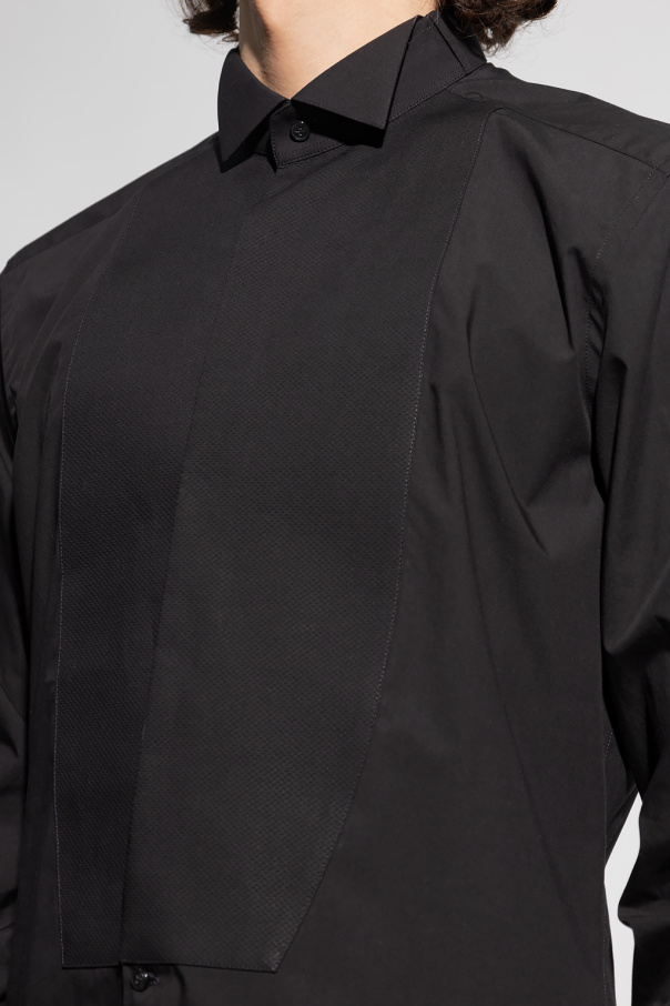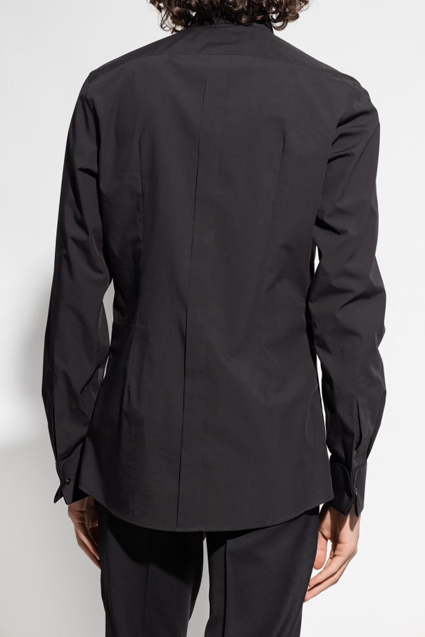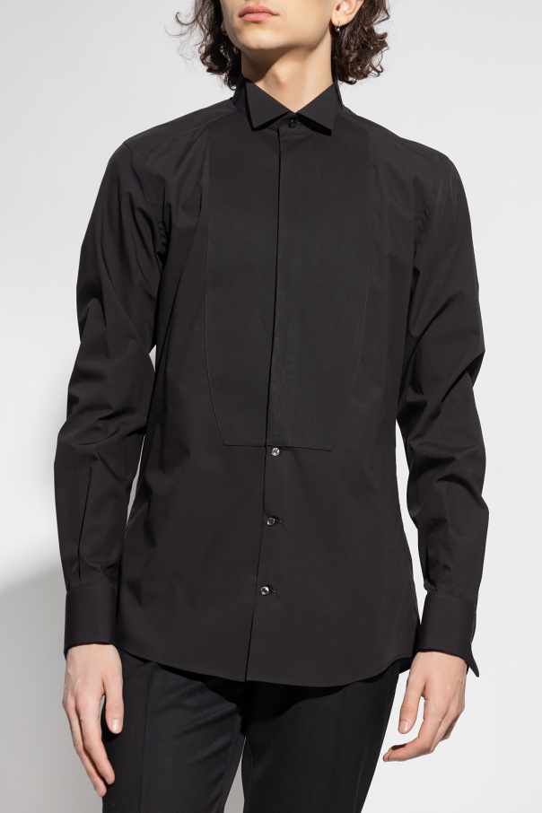 Black tuxedo shirt from Dolce & Gabbana. Made of cotton, this style features button fastenings and long sleeves with cufflink cuffs.