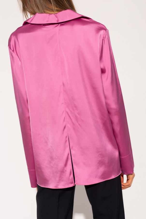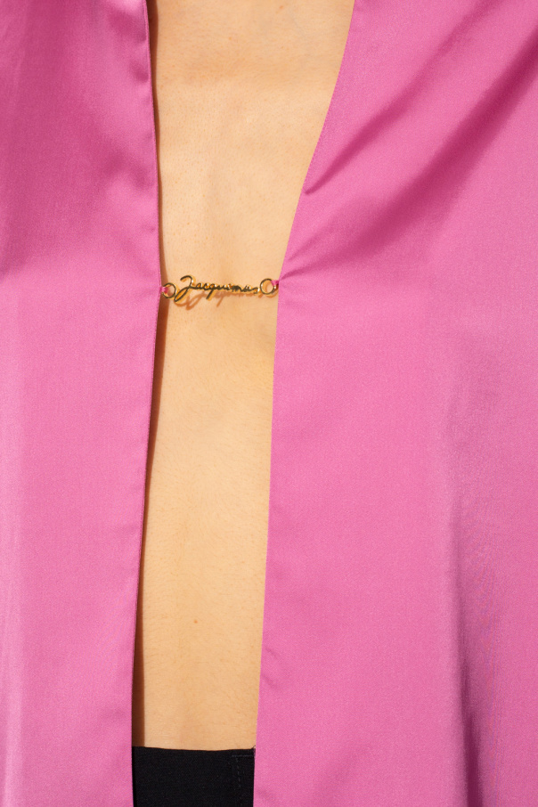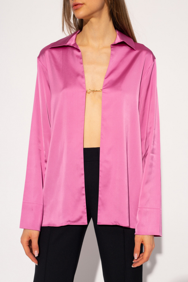 Pink shirt from Jacquemus. Accentuated with deep cut-outs, this style features a gold-tone metal logo plaque and long sleeves.