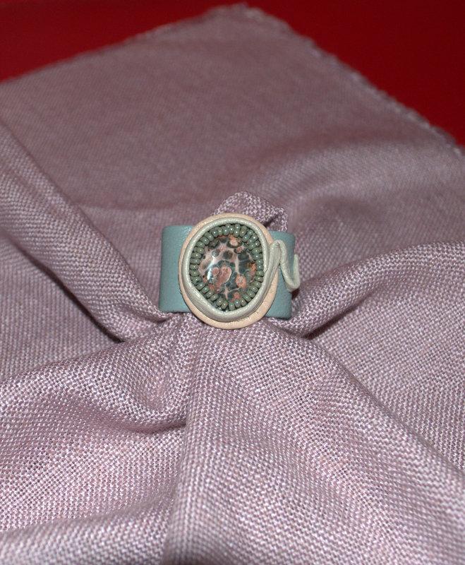 Кольцо сделано из натуральной кожи со вставкой натурального камня.Достойно и оригинально смотрится)