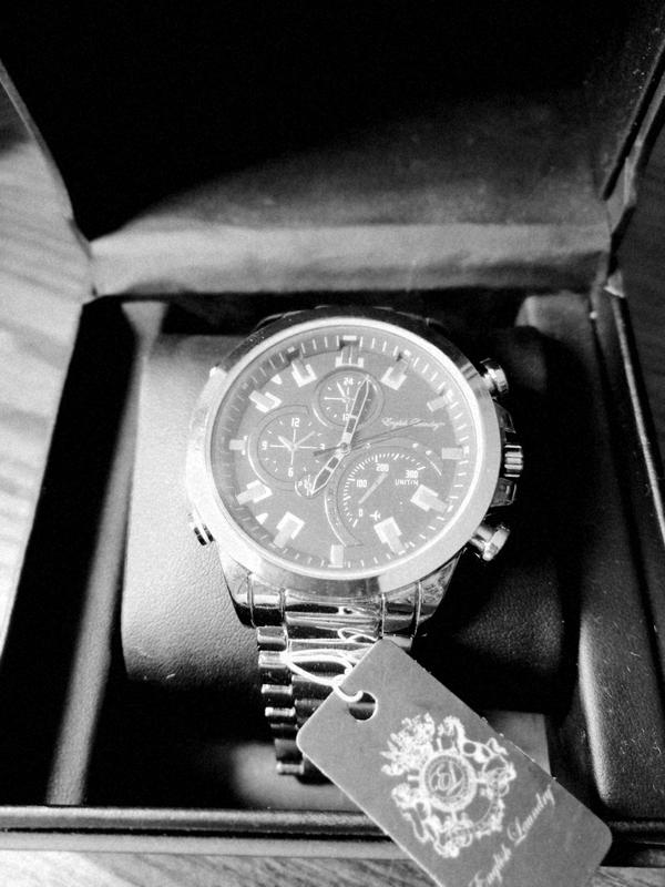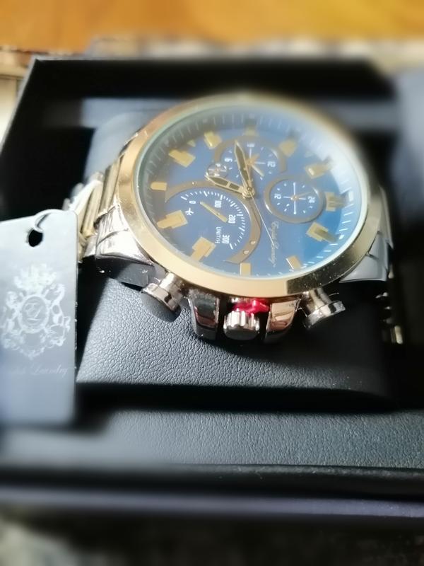 Часы хронограф. Бренд English Laundry. Номер модели EL4029S236-165. Часы аналоговые кварцевые, 6 камней. Японский механизм. Противоударные, стекло закалённое минеральное. Водонепроницаемые - 10 м (1 бар). Надёжный корпус из высококачественной нержавеющей стали. Размер корпуса 43 мм. Круглый циферблат синего цвета с золотыми индексами.
