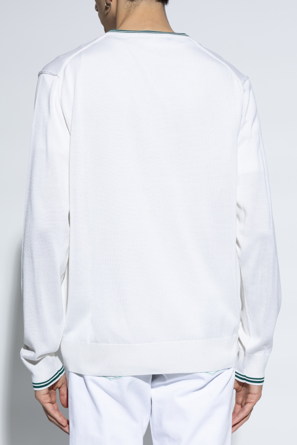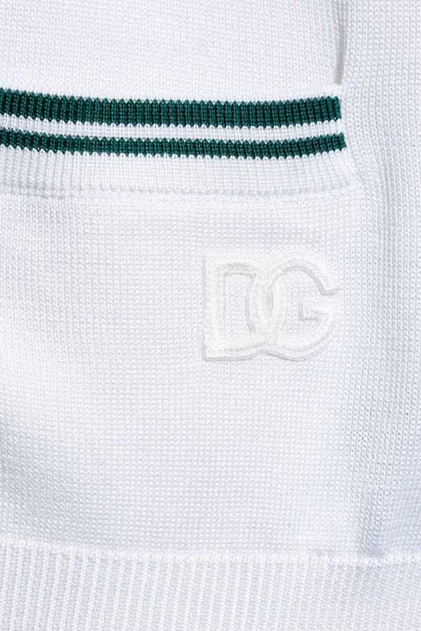 Presenting the silk cardigan from the renowned brand Dolce & Gabbana. This exclusive wardrobe piece, designed by the world-famous designers Domenico Dolce and Stefano Gabbana, captivates with its classic elegance and subtle details. The cardigan features a classic shape with long sleeves and dark green buttons that perfectly complement the green stripes on the edges of the neckline, pockets, and cuffs. Made from the highest quality silk, it offers unparalleled comfort and luxury. The cardigan\'s pattern is solid cream with distinct green accents that add a unique character. Two front pockets adorned with green stripes and a subtle \"DG\" logo embroidered on the lower left part of the cardigan highlight its exclusivity. Why should you buy this product? High-quality silk providing exceptional comfort Exclusive design by Dolce & Gabbana Elegant cream-green pattern suitable for various occasions Subtle, luxurious details such as embroidered logo and dark green buttons Universal and timeless style