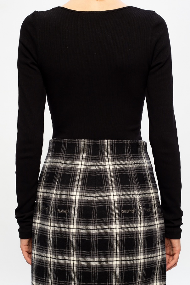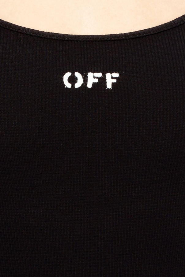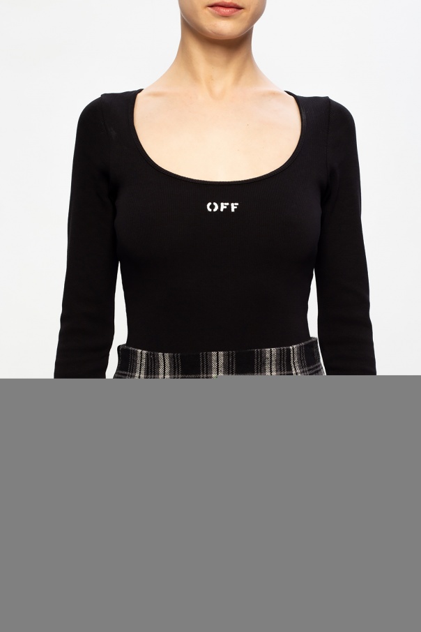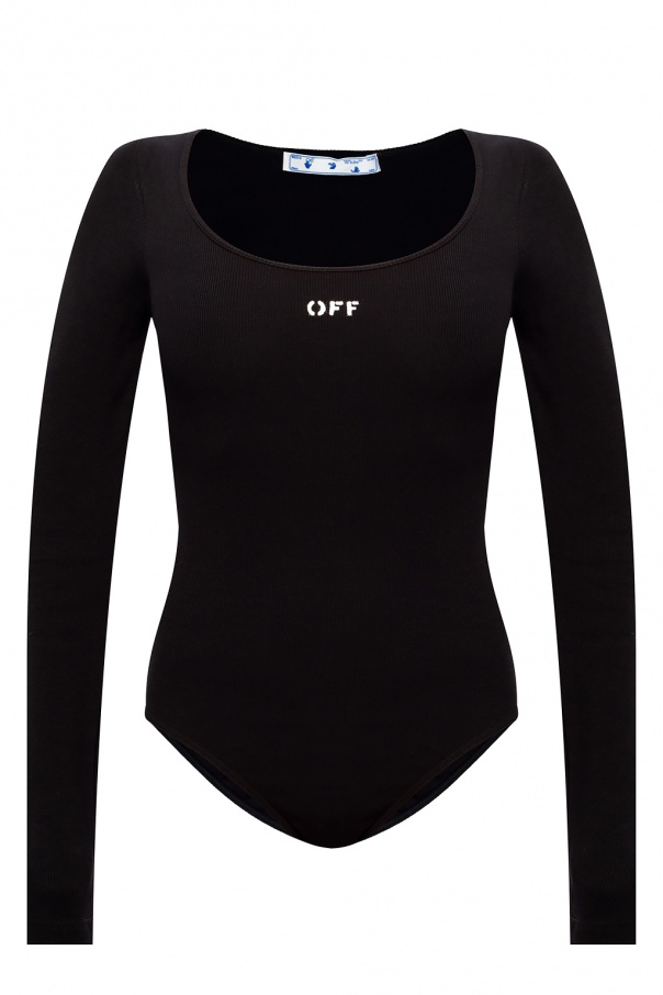 Black bodysuit from Off-White. Crafted from cotton with a ribbed texture, this design features a round neck and long sleeves.