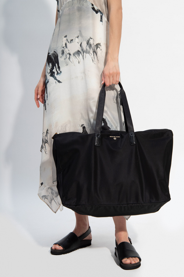 Black ‘Jet Set Travel’ holdall bag from Michael Michael Kors. Fastened with a zip, this design features a metal logo in gold-tone two half-round handles, gold-tone metal hardware and one internal compartment with a detachable zipped pouch.
