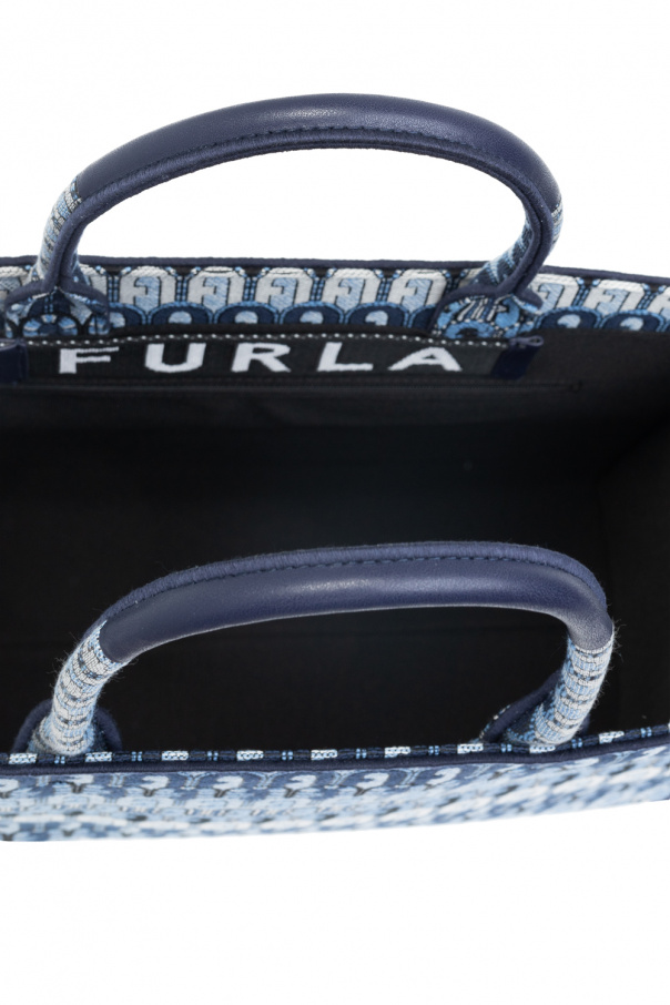 Blue and navy blue ‘Opportunity’ shopper bag from Furla. Distinguished with an embroidered pattern, this item features two half-round handles and one internal compartment with one slip pocket and one zip pocket.