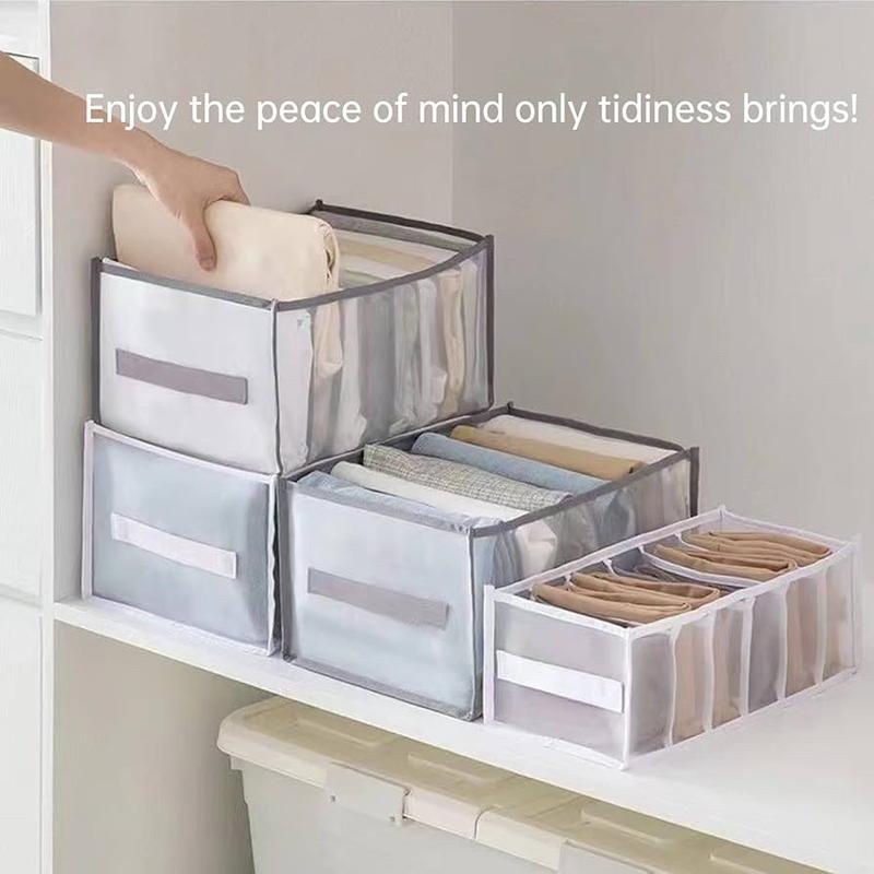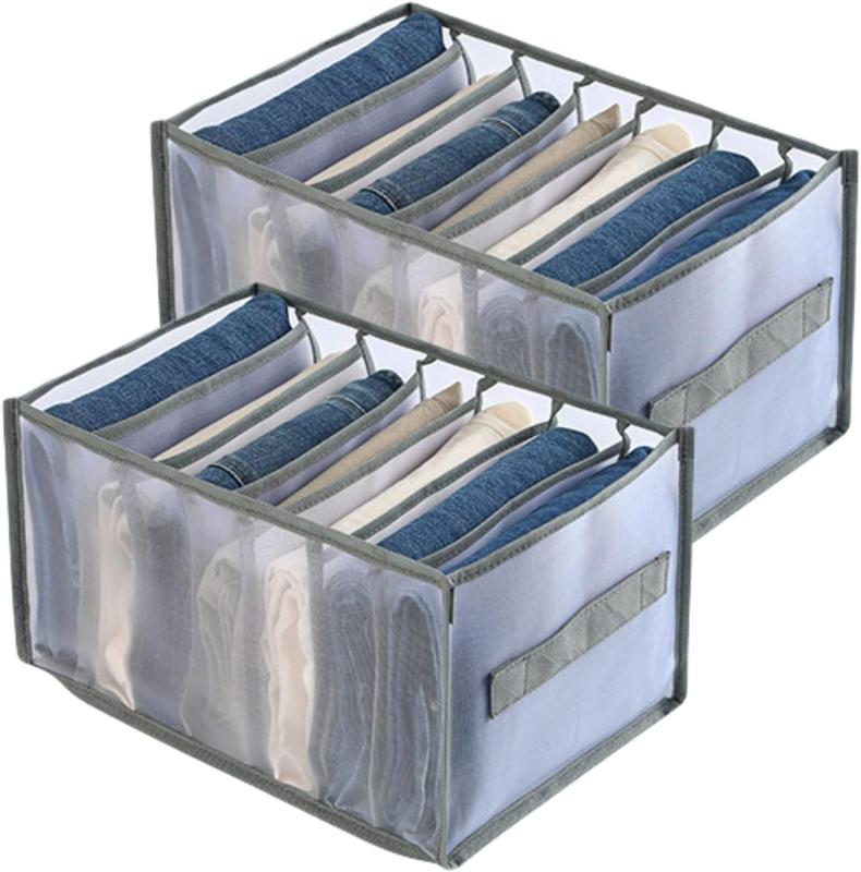 - 【С ручками】два конца органайзера для хранения джинсов в ящиках оснащены ручками, которые позволяют легко перемещать, вынимать и вставлять органайзер в ящик для одежды. Ручка утолщена и прошита, и она не повредится после длительного использования, сохраняя ваш гардероб и ящики в чистоте.