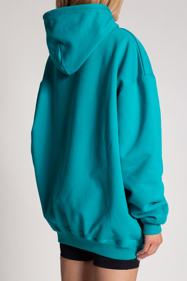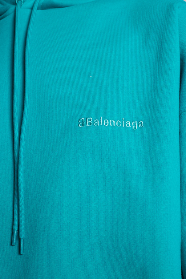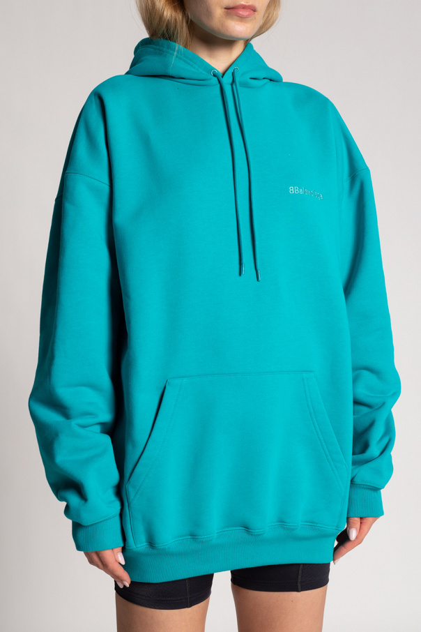 Green and blue sweatshirt with a drawcord-adjustable hood from Balenciaga. Crafted from cotton jersey with an oversize silhouette, this hoodie features an embroidered logo, a kangaroo pocket and ribbed trims on the edges.