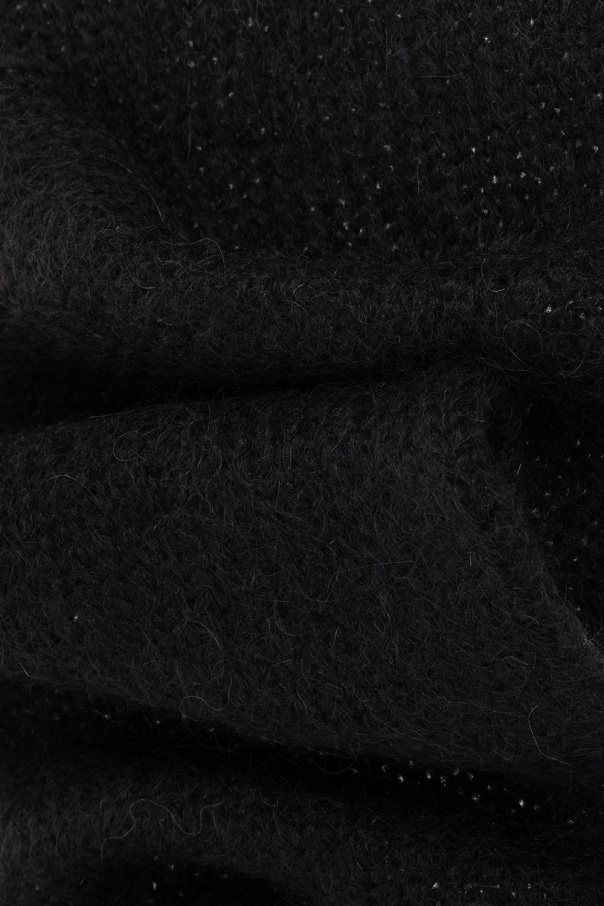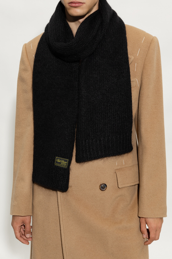 Black scarf with a logo patch from Raf Simons. Made of a mohair and wool blend.
