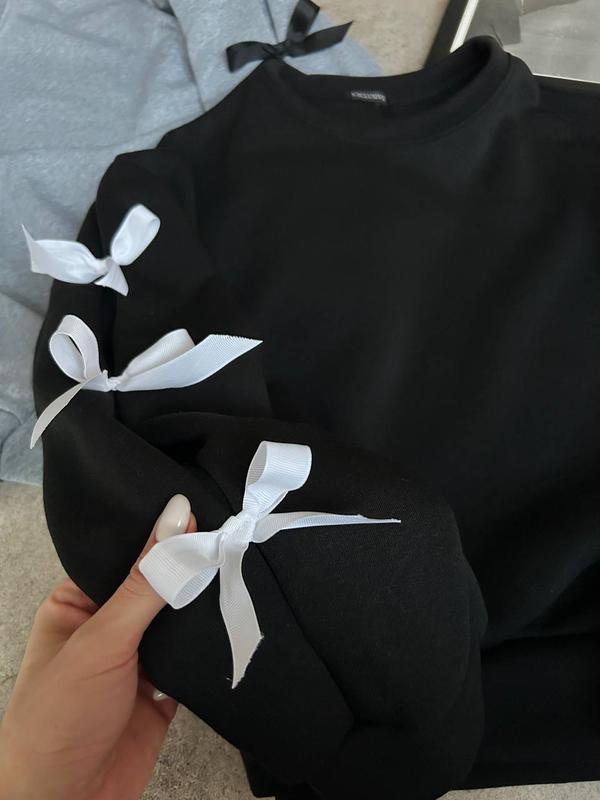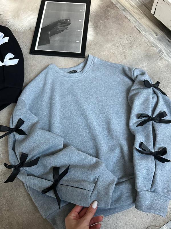 💵Цена 660 грн 🔥Wow🤩 Трендовый батник с бантиками на рукавах. Тепленький на флисе. В свободном оверсайз стиле.