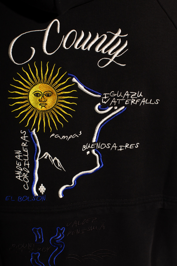 Black sweatshirt with a drawcord-adjustable hood from Marcelo Burlon. Made of cotton jersey, this hoodie features a pocket and an embroidered blue and white logo on the front, colourful embroidery with the brand\'s logo at the back and ribbed finishes at the bottom hem and cuffs.