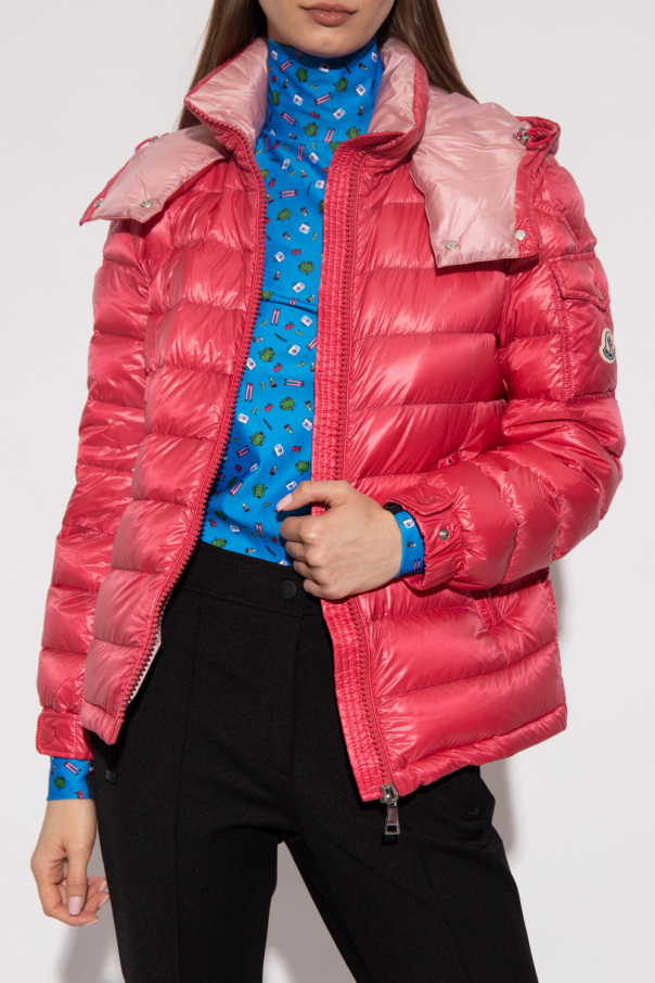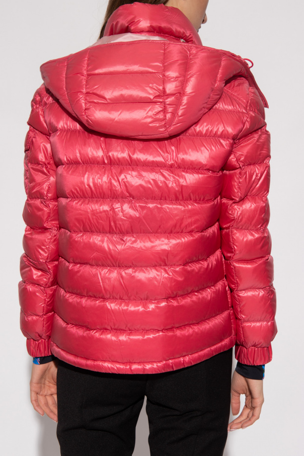 Pink ‘Dalles’ down jacket with a detachable hood from Moncler. Made of Saison nylon, which makes the garment surprisingly light. Fastened with a two-way zip, this garment features a drawstring hood, two zip pockets and long sleeves with a flap pocket and felt logo.